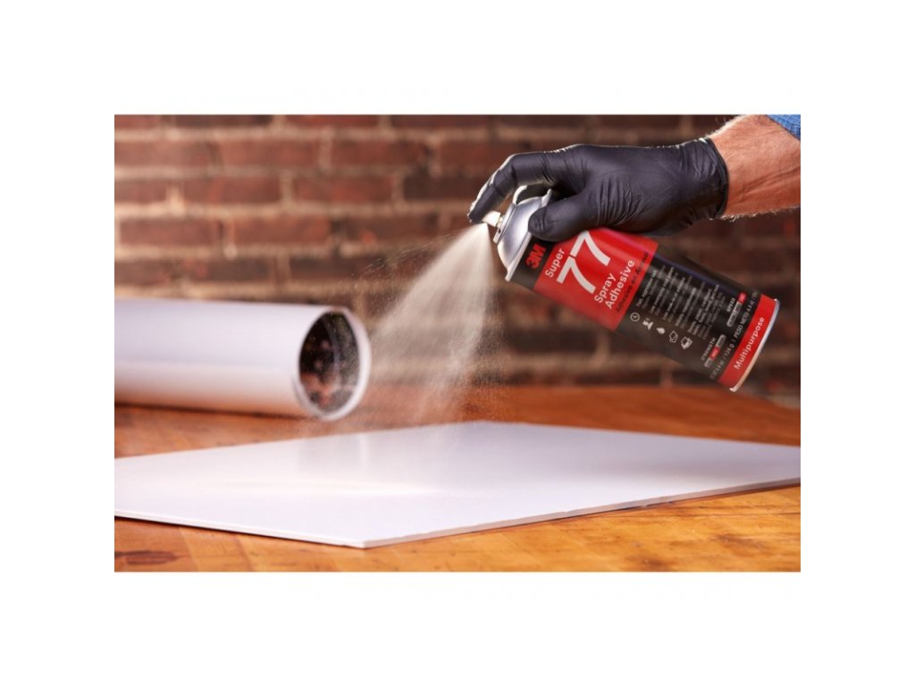 Víceúčelové sprejové lepidlo 3M Scotch-Weld 77 má rychlou počáteční lepivosti při aplikaci na jeden povrch. Při aplikaci na oba povrchy má dlouhou otevřenou dobu. Obzvláště vhodné pro lepení polystyrenových pěn. U porézních substrátů se nanáší na oba lepené povrchy, u hladkých materiálů na jeden z povrchů.