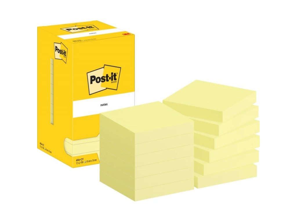 3M Post-it 654 samolepící bloček super sticky, 76x76 mm, silně lepící, 12 ks, kanárkově žlutá