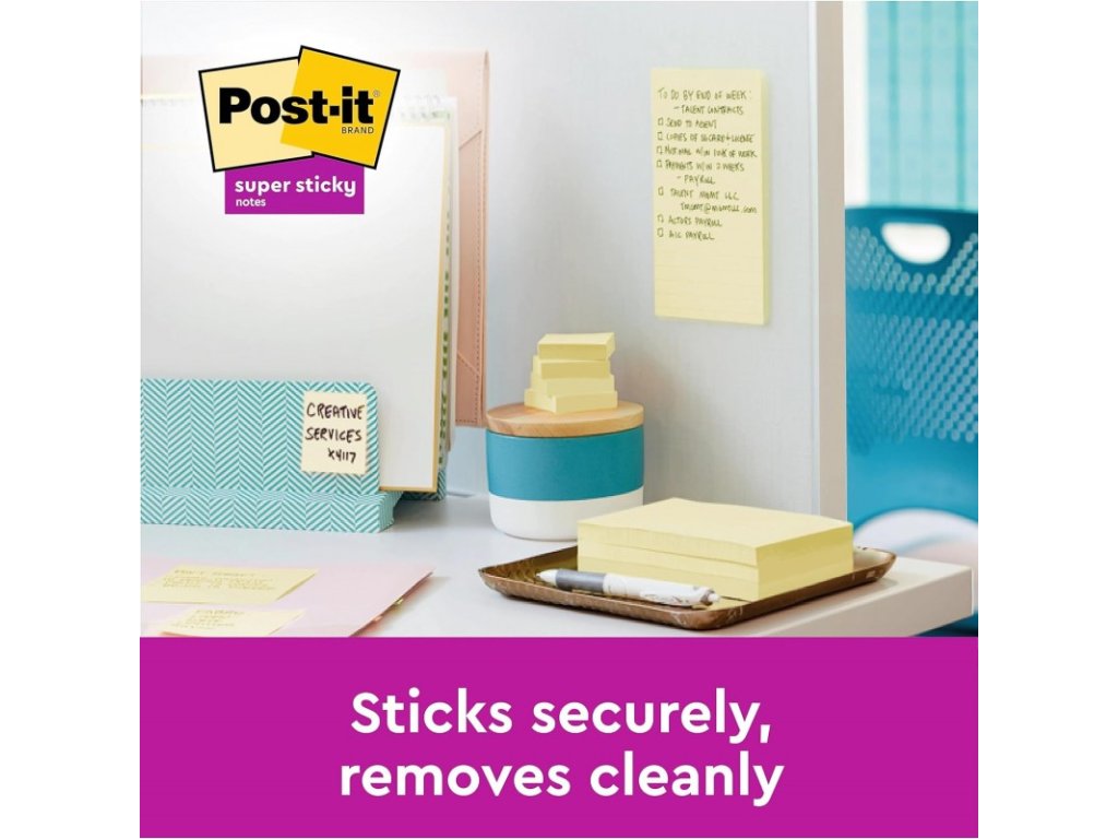 3M Post-it 654 samolepící bloček super sticky, 76x76 mm, silně lepící, 6x90 ks, žlutá
