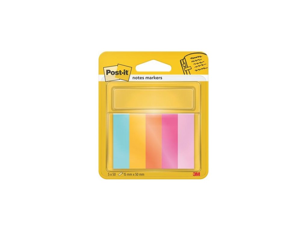 - Samolepicí záložky, mix barev, 15x50 mm, 5x50 listů, 3M POSTIT