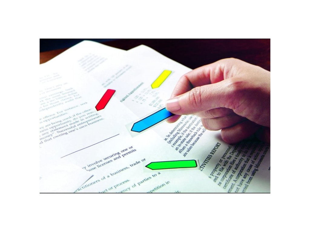 - Samolepicí záložka - ŠIPKA ukazuje přesné místo na dokumentu, popisovatelná.