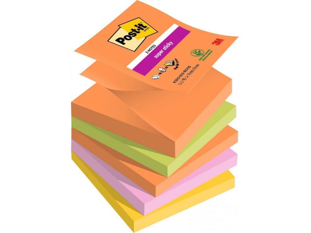 Post-it® silně lepicí Z-bločky drží pevněji a vydrží déle nalepené. Mají dvakrát větší lepicí sílu než Post-it® originální bločky, takže si můžete být jisti, že se vaše zpráva dostane ke svému příjemci. Díky těmto Z-bločkům, které se výborně hodí na svislé a špatně lepivé povrchy, můžete v mžiku napsat na lístek svoje myšlenky – ideální, když právě telefonujete nebo máte plné ruce práce. Dodávají se v intenzivních zářivých barvách, jsou obzvlášť silné, obzvlášť univerzální a navržené tak, aby vaše poznámky vynikaly. Jsou vyrobené z certifikovaného PEFC papíru pocházejícího z certifikovaných, obnovitelných a zodpovědně obhospodařovaných lesů a s lepidlem z 60 % vyrobeným z obnovitelných zdrojů z rostlin, které jsou každoročně znovu vysazované.