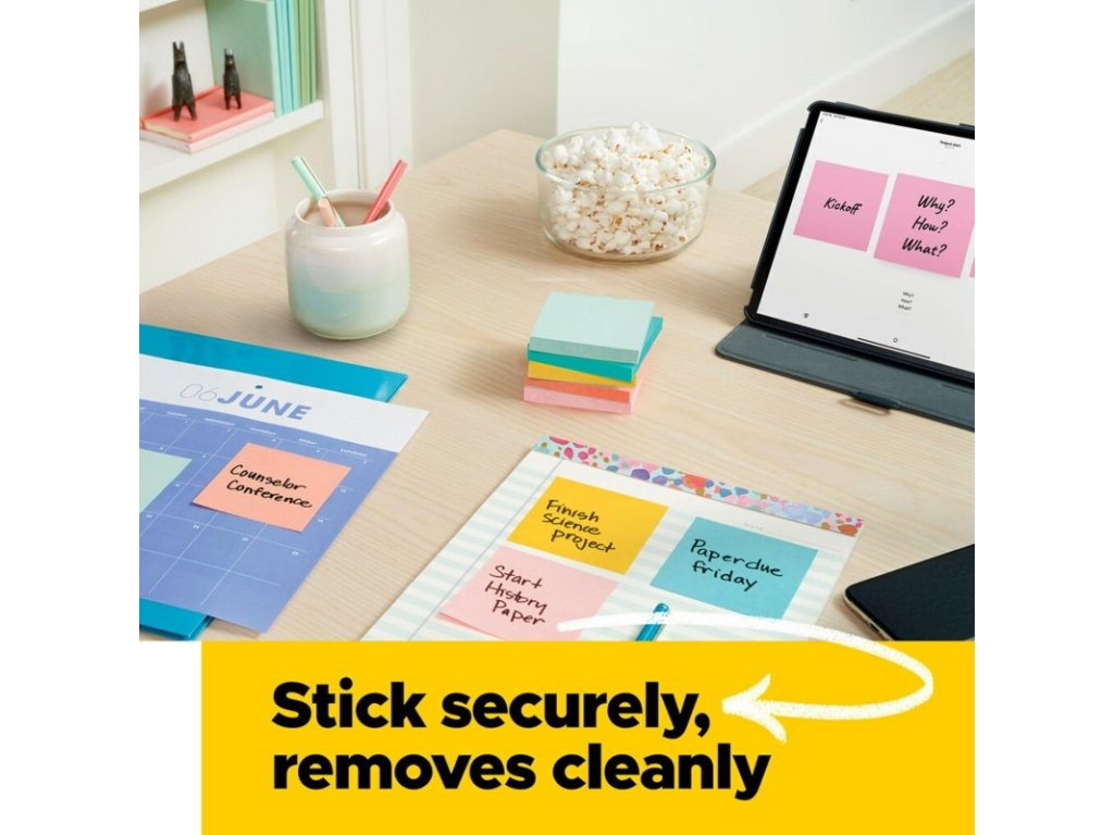 - S Post-it® samolepicí bločky z barevné kolekce Beachside vaše zprávy určitě nezapadnou a dodáte jim osobní nádech. Tyto samolepicí bločky, které vám pomohou zorganizovat práci, se dodávají v zářivých, optimistických barvách. Buď si můžete vybrat, kterou barvu použít jako první podle nálady, nebo můžete použít více barev najednou pro třídění a organizování různých informací. Post-it® poznámkové bločky se vyrábějí z papírových vláken certifikovaných PEFC, která pocházejí z udržitelně obhospodařovaných lesů a kontrolovaných zdrojů.