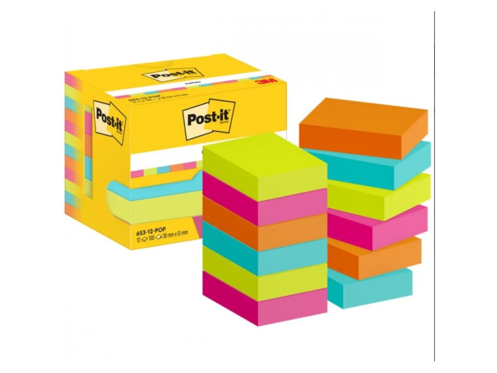 - S Post-it® samolepicí bločky z barevné kolekce Poptimistic vaše zprávy určitě nezapadnou a dodáte jim osobní nádech. Tyto samolepicí bločky, které vám pomohou zorganizovat práci, se dodávají v zářivých, optimistických barvách. Buď si můžete vybrat, kterou barvu použít jako první podle nálady, nebo můžete použít více barev najednou pro třídění a organizování různých informací. Post-it® poznámkové bločky se vyrábějí z papírových vláken certifikovaných PEFC, která pocházejí z udržitelně obhospodařovaných lesů a kontrolovaných zdrojů.
