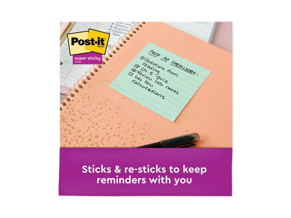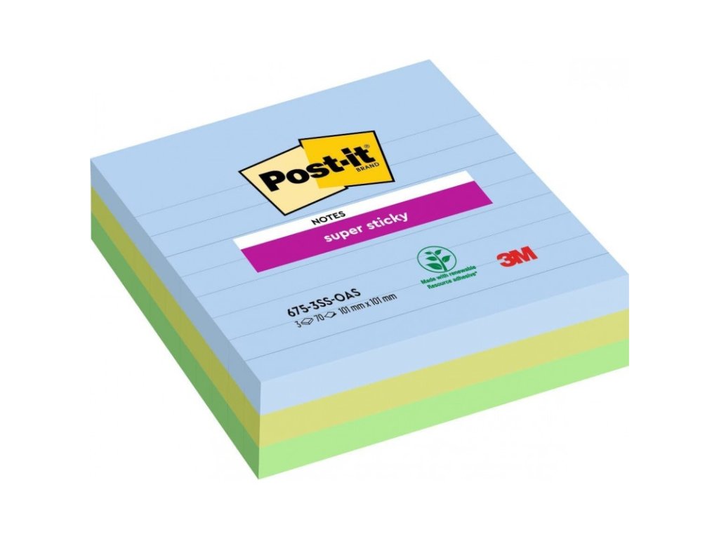 3M Post-it Super Sticky Oasis, samolepící bločky silně lepící, 101x101 mm, 3x70 lístků, linkované