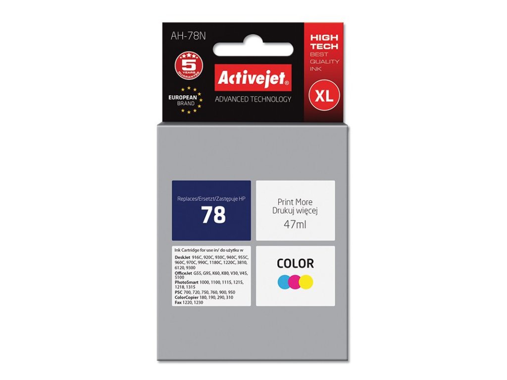 AH-578N, Inkoustová cartridge ActiveJet HP C6578AE barevná č.78 (47ml)