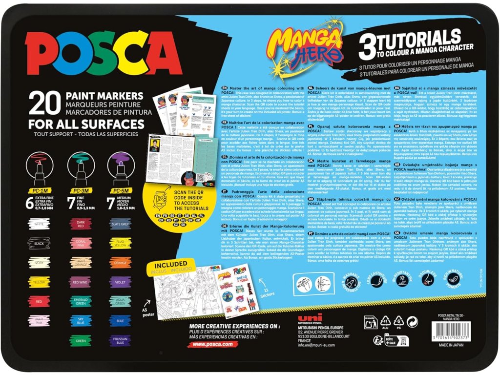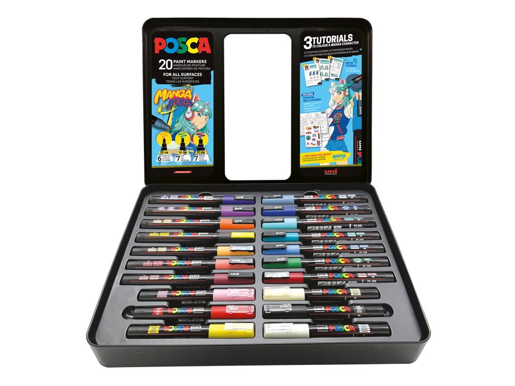 Akrylový popisovač Posca Sada MANGA HERO - 20 ks v kovovém boxu vč. návodu