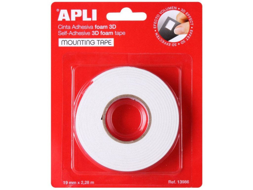 APLI 13986, Lepící pěnová páska, 3D, oboustranná, 19 mm x 2,28 m, bílá