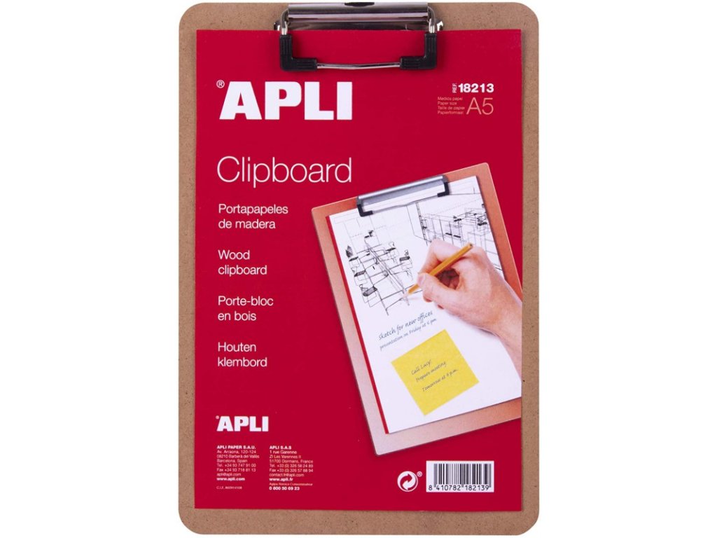 Apli dřevěná podložka na psaní formát A5, s klipem na uchycení