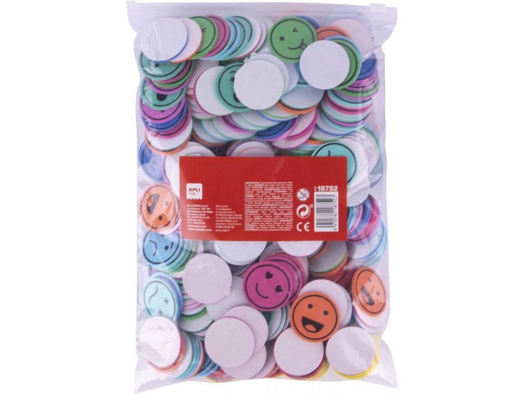 APLI Kids - pěnovka smajlíci - Jumbo pack, 500 ks, samolepicí, mix barev