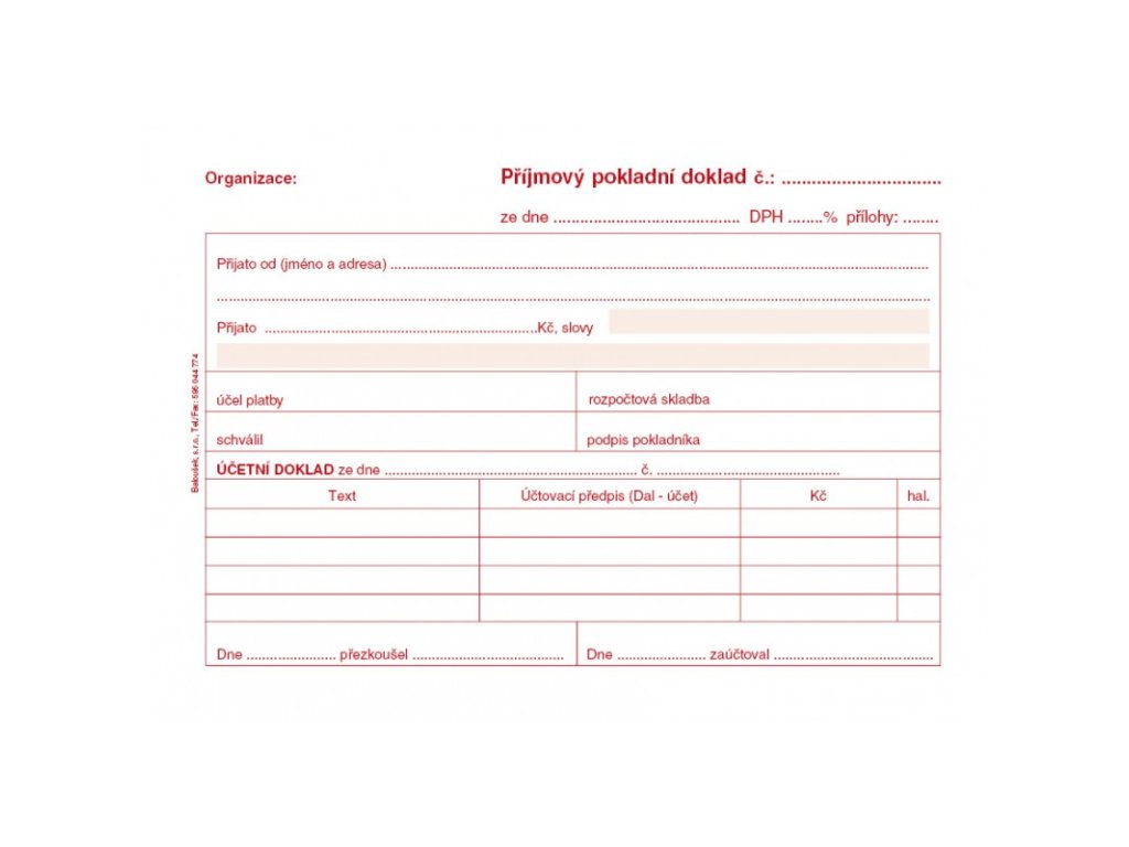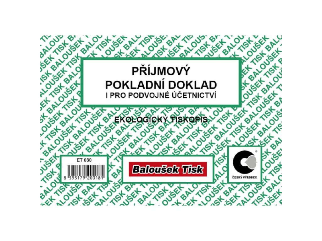 Baloušek ET030, příjmový pokladní doklad pro podvojné účetnictví A6
