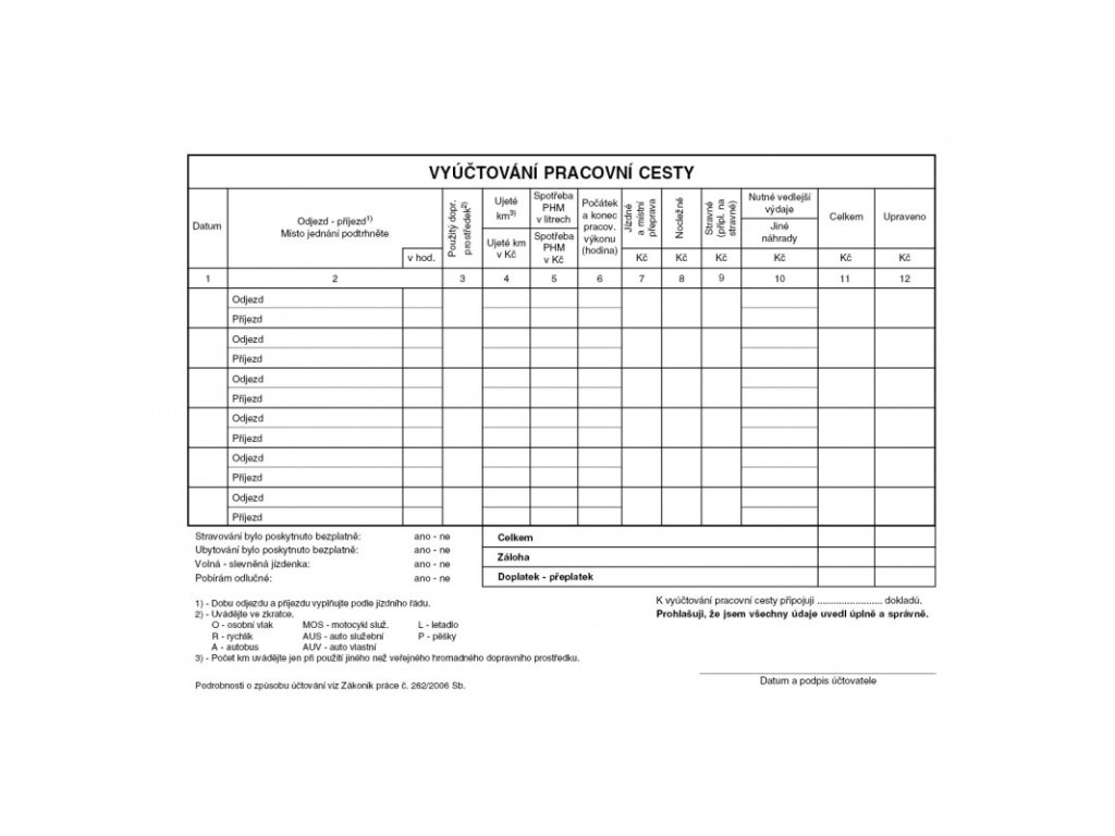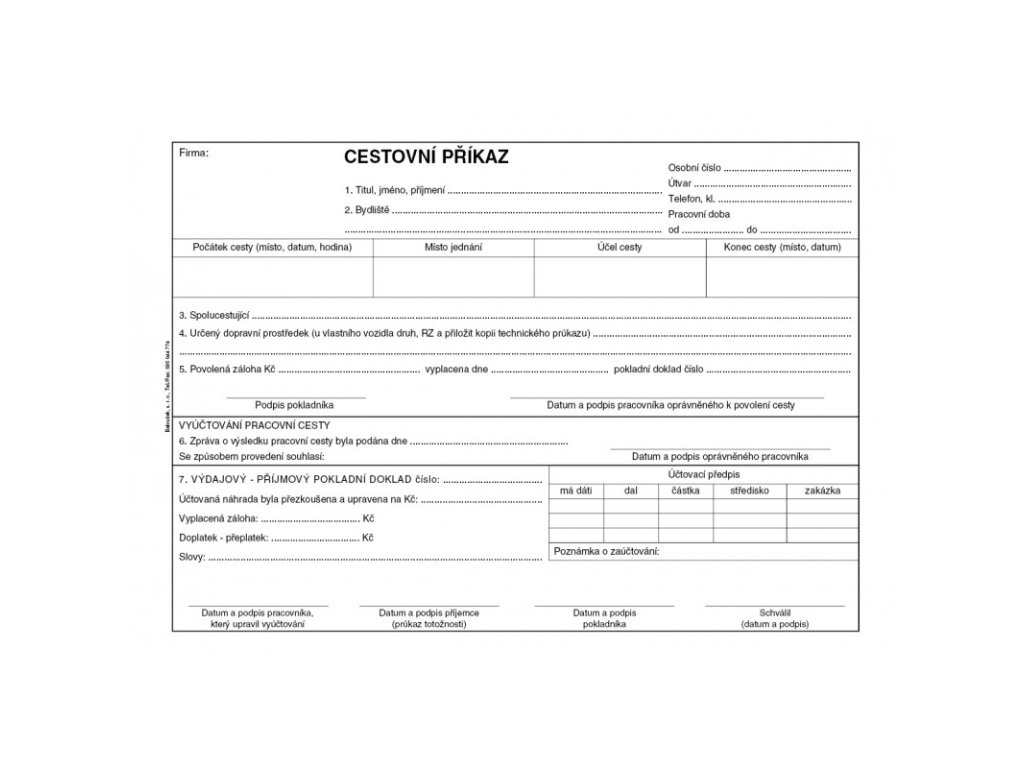 Baloušek ET230, cestovní příkaz s vyúčtováním pracovní cesty A5