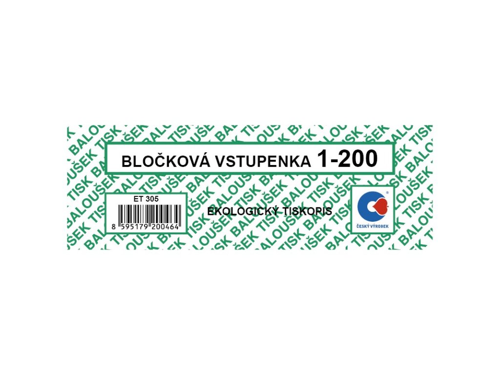 Baloušek ET305, bločková vstupenka 1-200 čísel