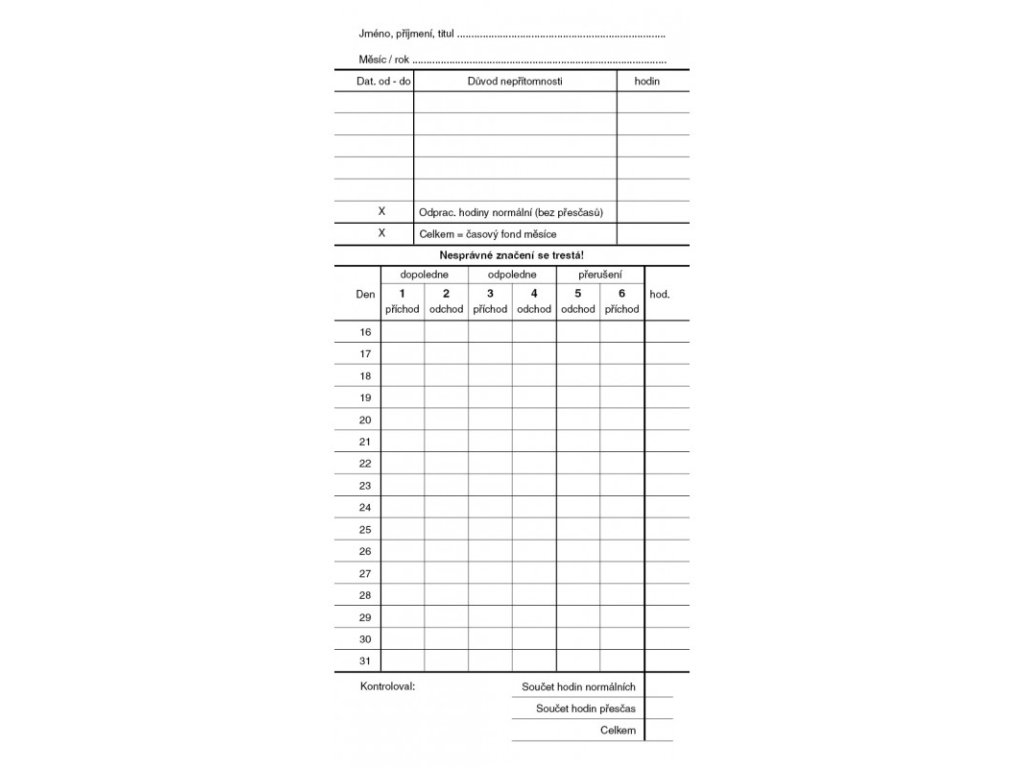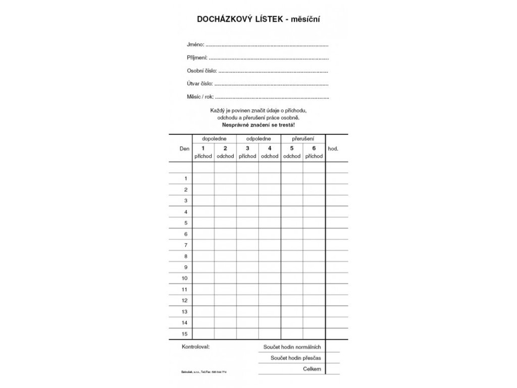 Baloušek ET475, Docházkový list - píchačka oboustranná