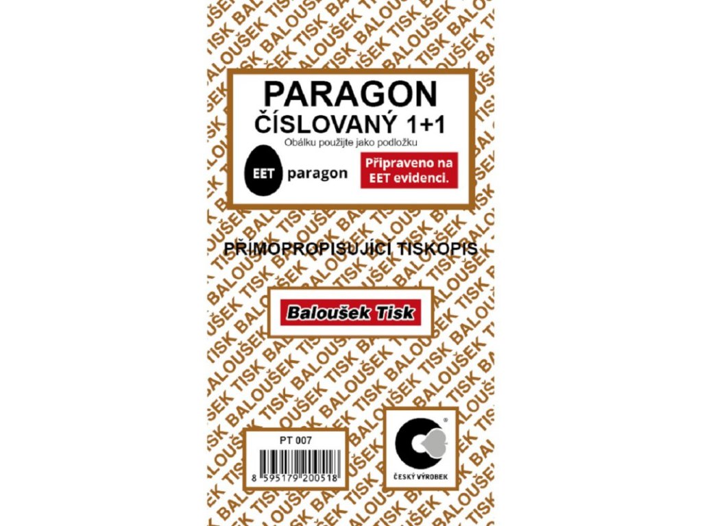 Baloušek PT007, paragon číslovaný 1+1 samopropis
