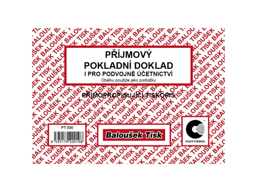 Baloušek PT030, příjmový pokladní doklad pro podvojné účetnictví A6 samopropis