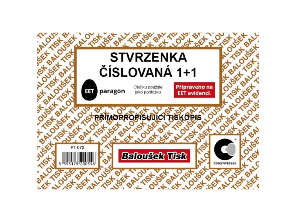 Baloušek PT072, stvrzenka A6 číslovaná 1+1 samopropis