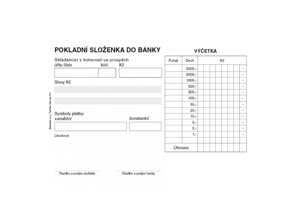 Baloušek PT080, pokladní složenka do banky A6 samopropis