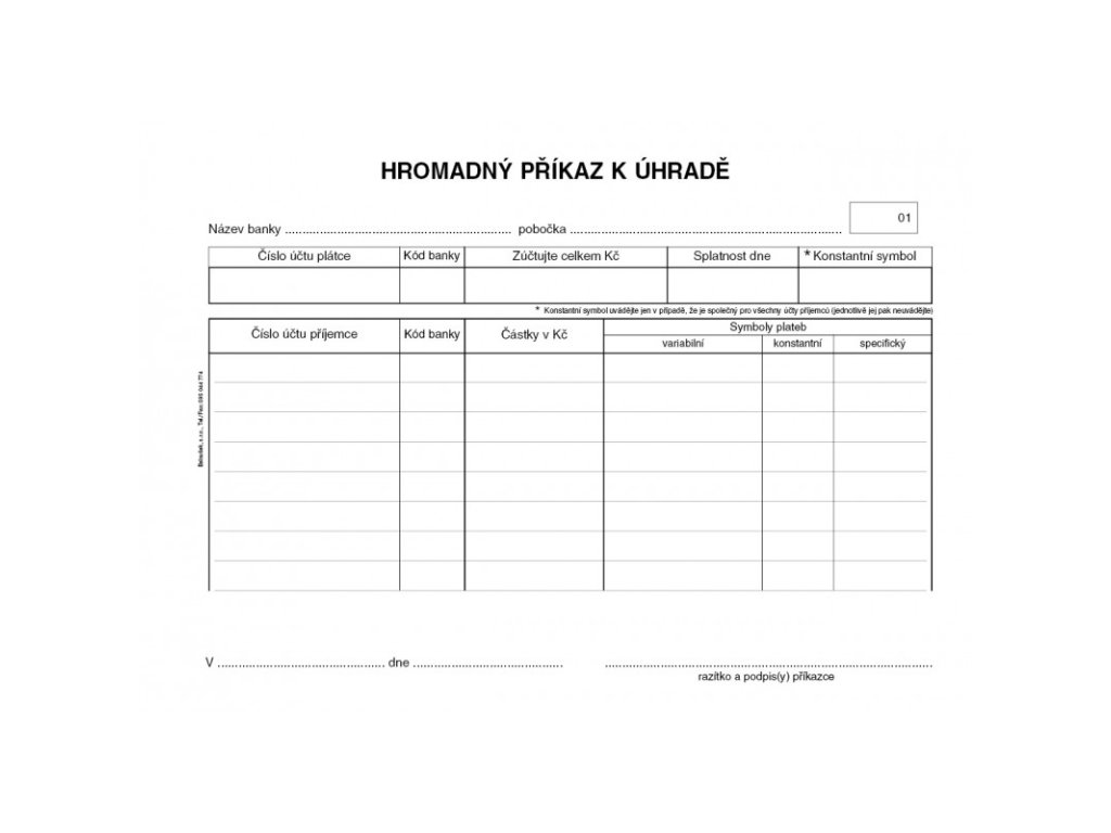 Baloušek PT100, hromadný příkaz k úhradě A5 samopropis