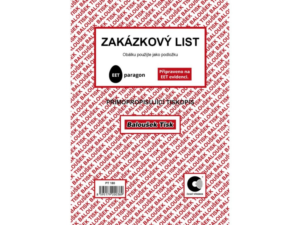 Baloušek PT180, zakázkový list A5 samopropis