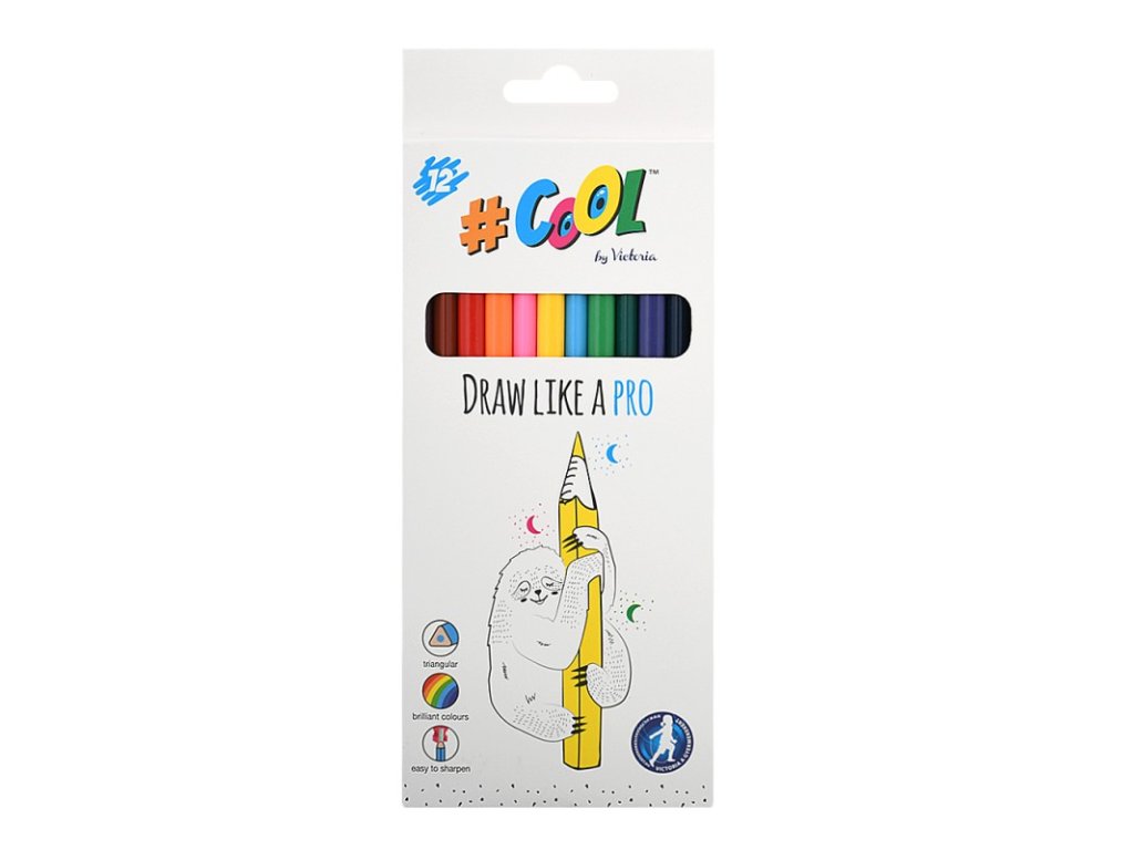 Barevné pastelky, 12 barev, trojhranné, COOL BY VICTORIA