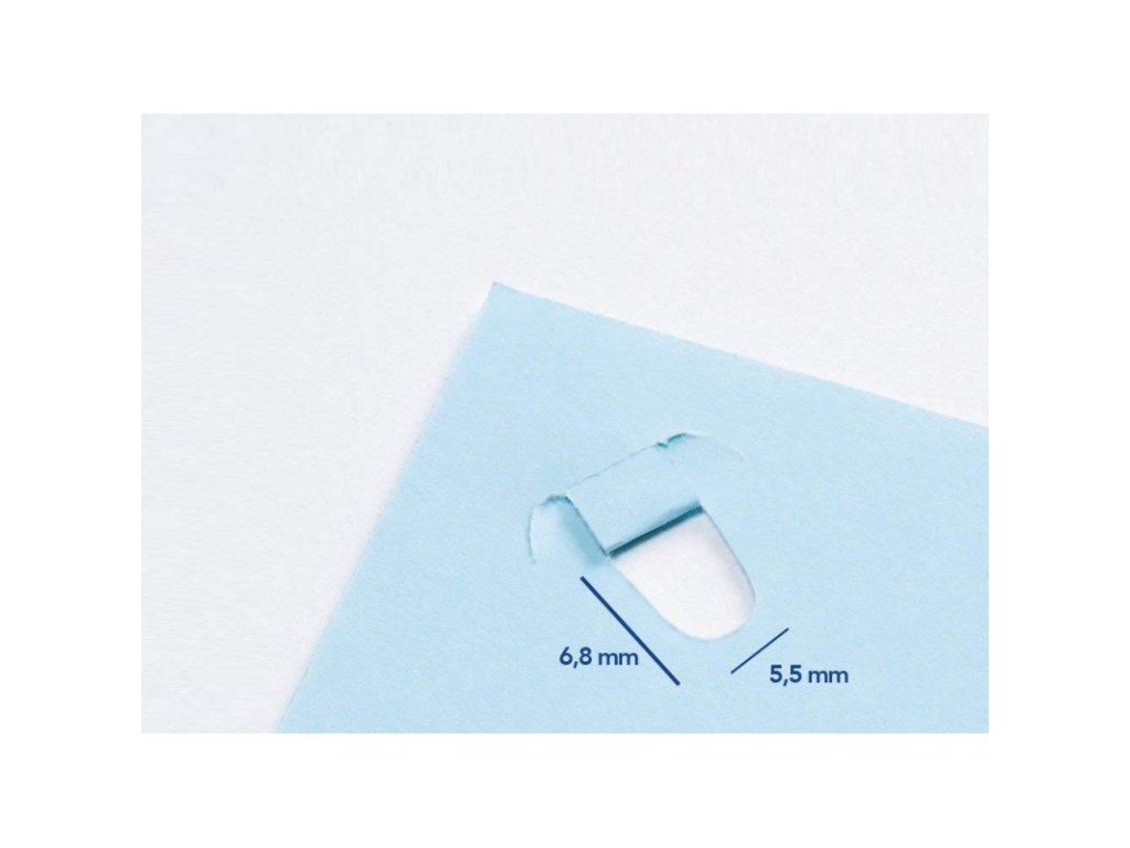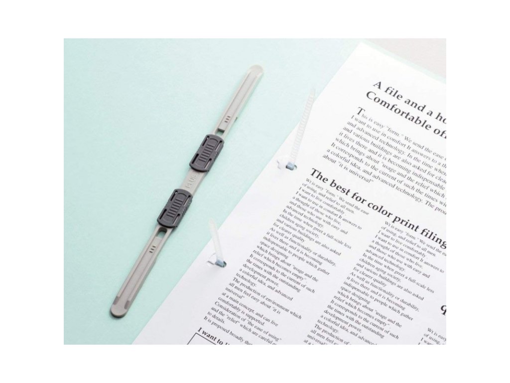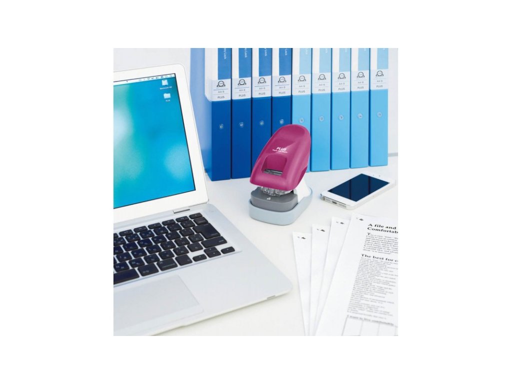 - Bonus ! - S použitím měřidla, které je součástí sešívačky můžete na dokumentech jednoduše vytvořit dvě díry - rozpětí max. 8 cm podle rysek na měřítku a dokument založit např. do šanonu.