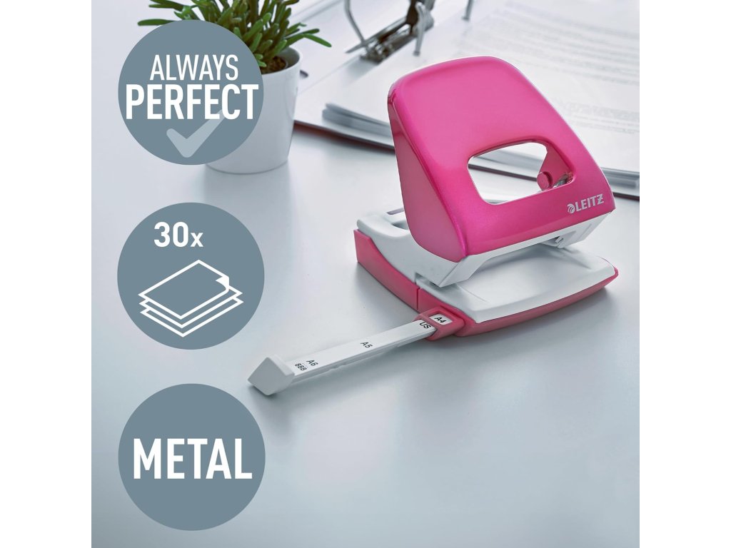 Celokovová stolní děrovačka Leitz NeXXt WOW 5008, metalická růžová