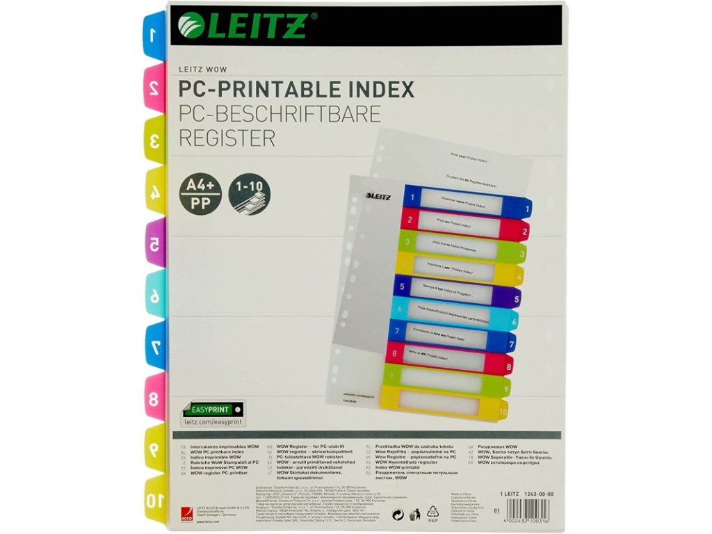 Celoplastové rejstříky Leitz Wow popisovatelné na počítači A4 MAXI, 1-10 barev