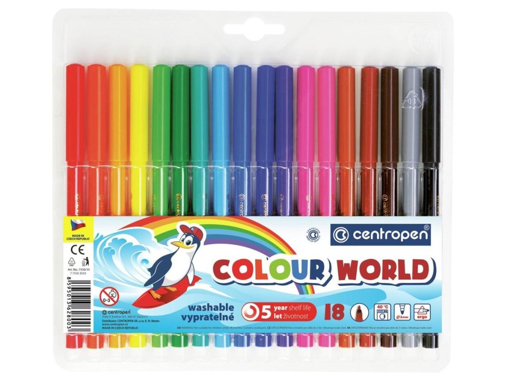 Centropen barevné popisovače COLOUR WORD 7550 sada 18ks, stopa 1 mm