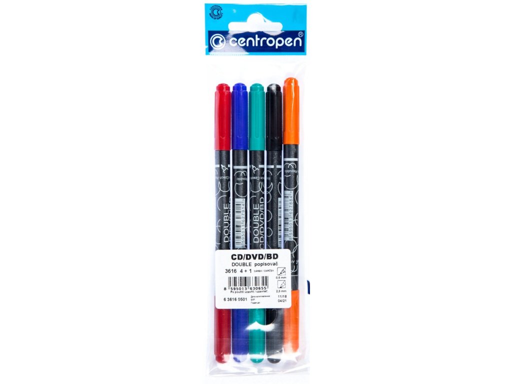 Centropen permanentní popisovač CD/DVD 3616 double, stopa 0,6 - 2,5 mm, sada 5 barev
