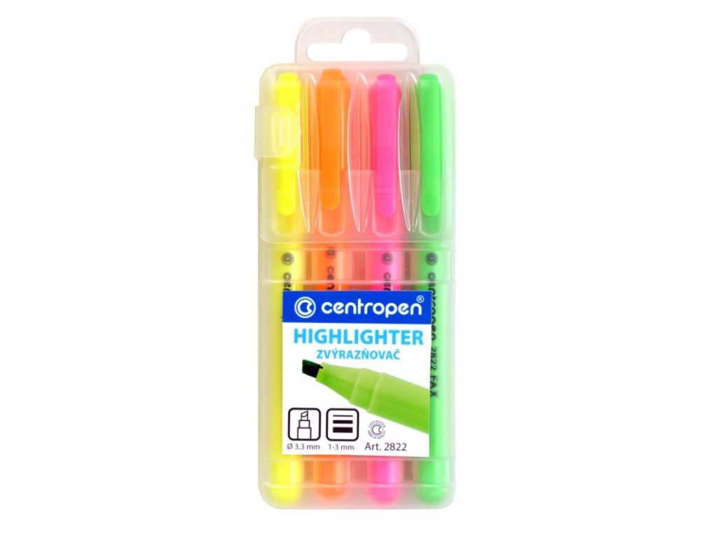 Centropen zvýrazňovač 2822 sada 4ks, stopa 1-3 mm