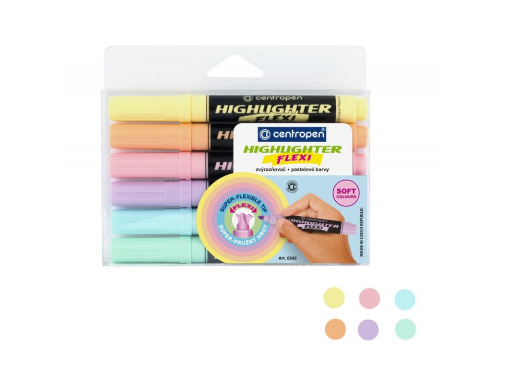 Centropen zvýrazňovač 8542 sada 6ks, stopa 1-4,6 mm, pastelové barvy