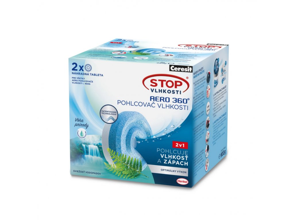 - Ceresit Stop vlhkosti "Aero 360°", vodopád, tablety, 2x 450 g, HENKEL 2629464
