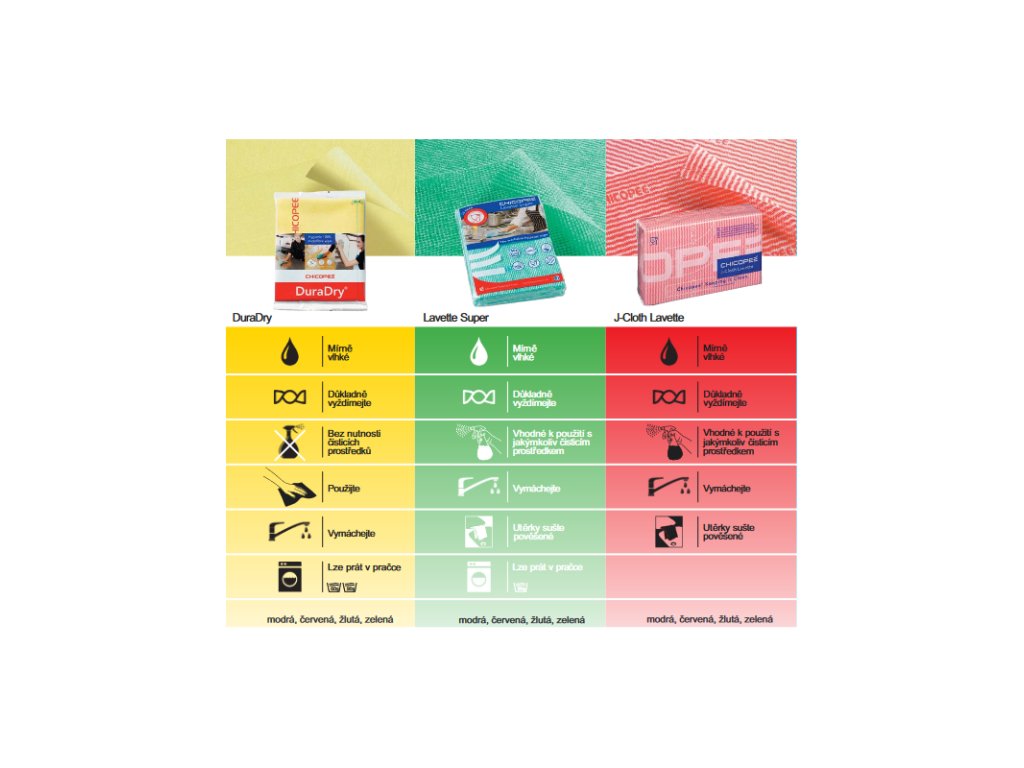 - ubrousky DuraDry® jsou vyrobeny ze 100% mikrovlákna, a umožňují tak snadné čištění jakéhokoliv povrchu od skla až po nerezovou ocel – rychle, důkladně a bez šmouh.