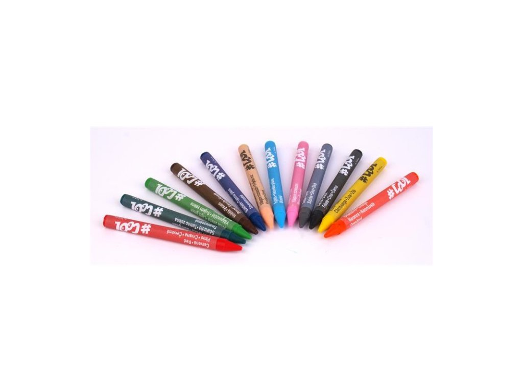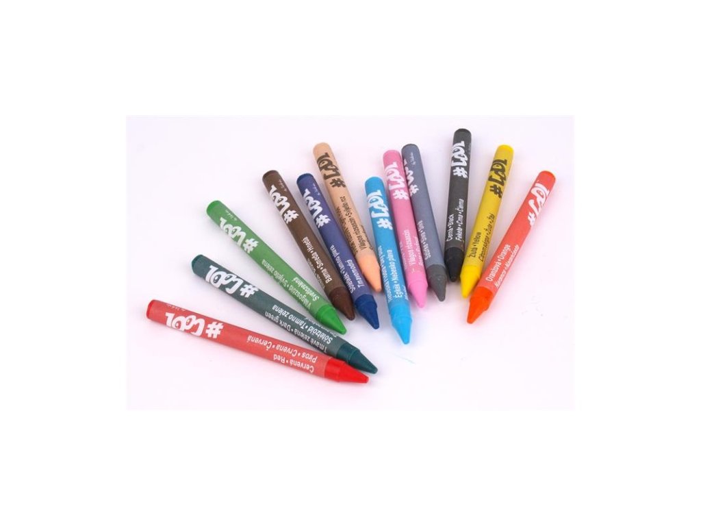 - v sadě je celkem 12 voskovek: žlutá, oranžová, červená, světle růžová, růžová, nebesky modrá, tmavě modrá, světle zelená, tmavě zelená, hnědá, šedá, černá