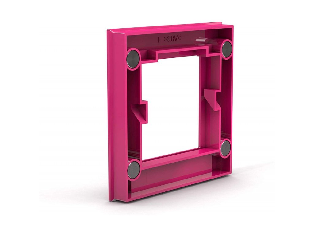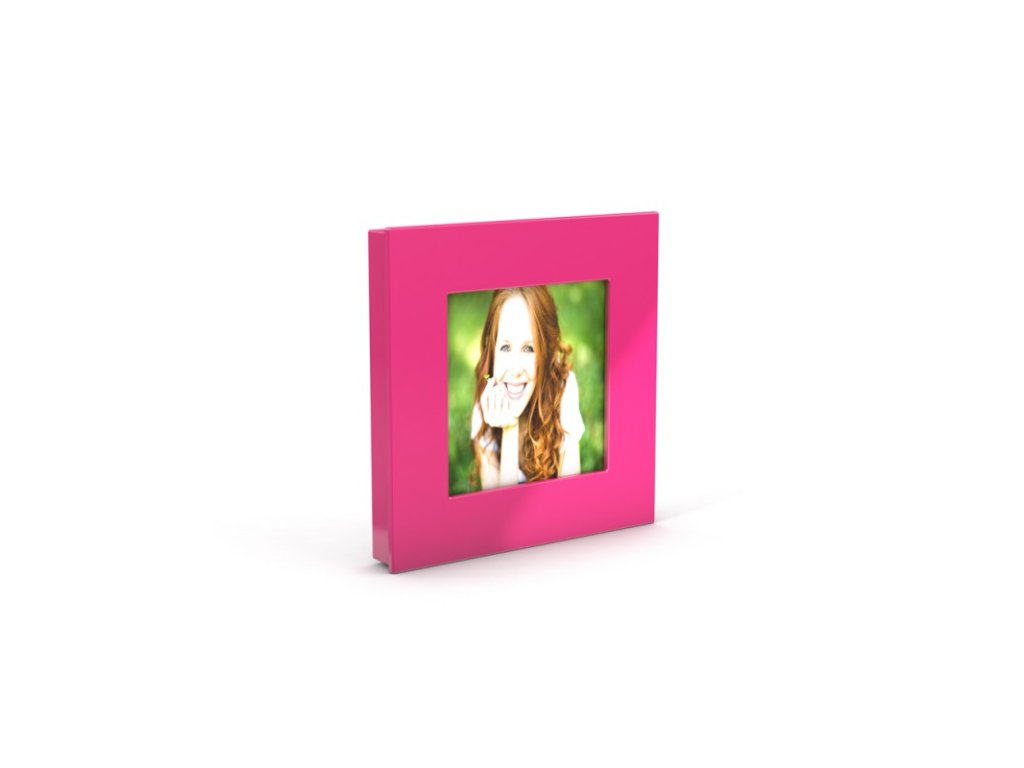 Designový rámeček se silným magnetickým uchycením na zadní straně. Vhodné pro umístění fotografií a obrázků o rozměru 5,2 cm x 5,2 cm. Umístění je snadné díky čtyřem neodymovým magnetům - podkladem může být jakýkoliv kovový povrch, např. lednice a magnetické tabule. Pevně drží a lze s ním dle potřeby manipulovat. Rozměr: 75 x 75 mm. Barva: růžová. Materiál: plast. Balení: 1 ks.