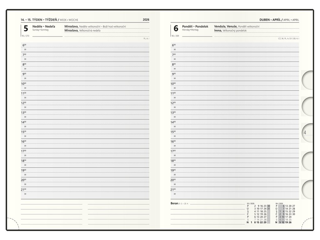 • Dny a měsíce ve 4 jazycích: CZ, SK, EN, DE