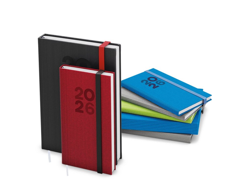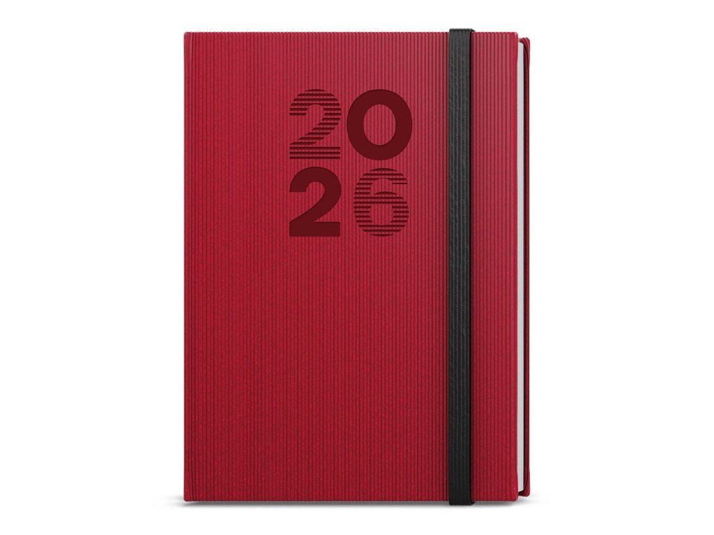DENNÍ DIÁŘ A5 S GUMIČKOU VIGO - ČERVENÁ 2026 - JEMNÝ STRUKTUROVANÝ POVRCH