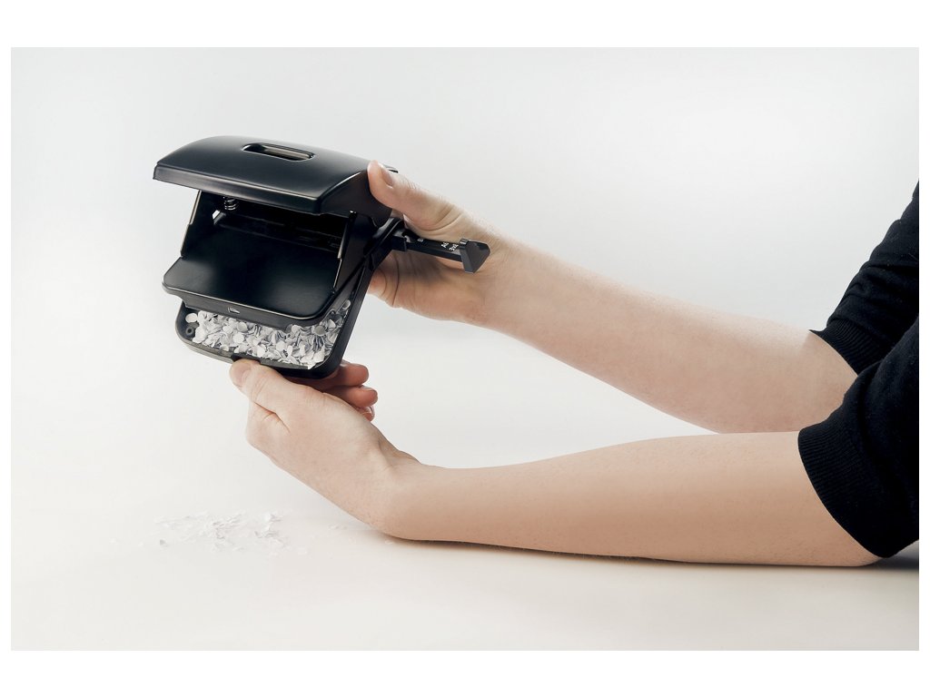- Výklopné dno z měkké pryže lze při vyprazdňování odřezků zpola otevřít a zase jednoduše zavřít