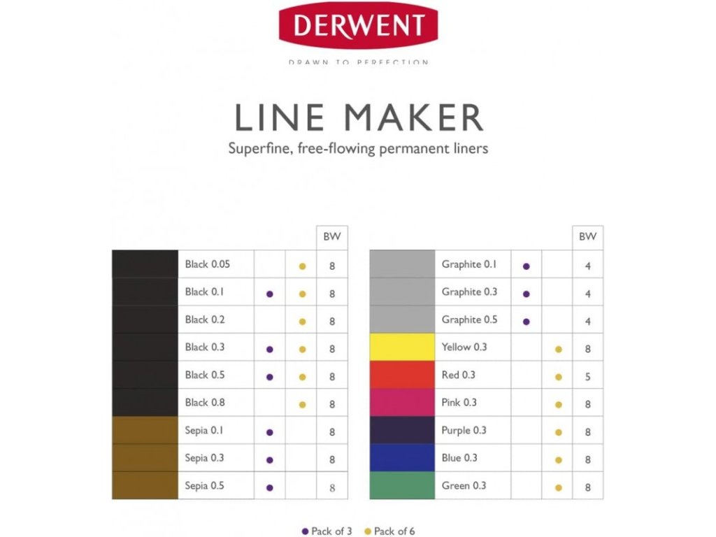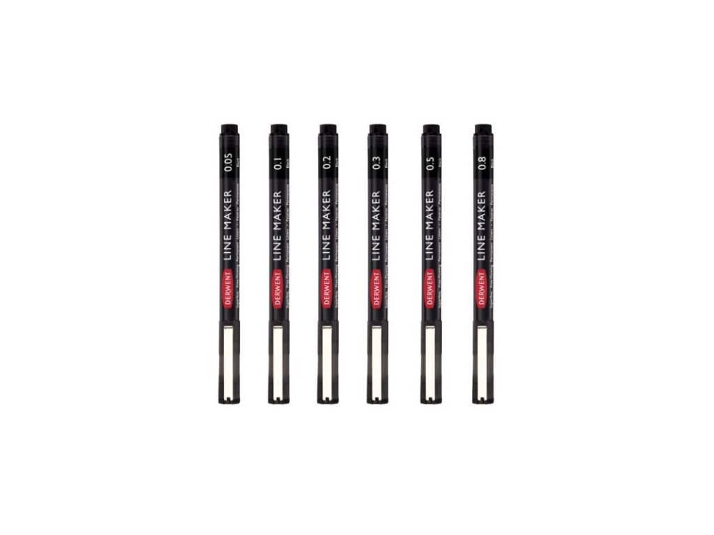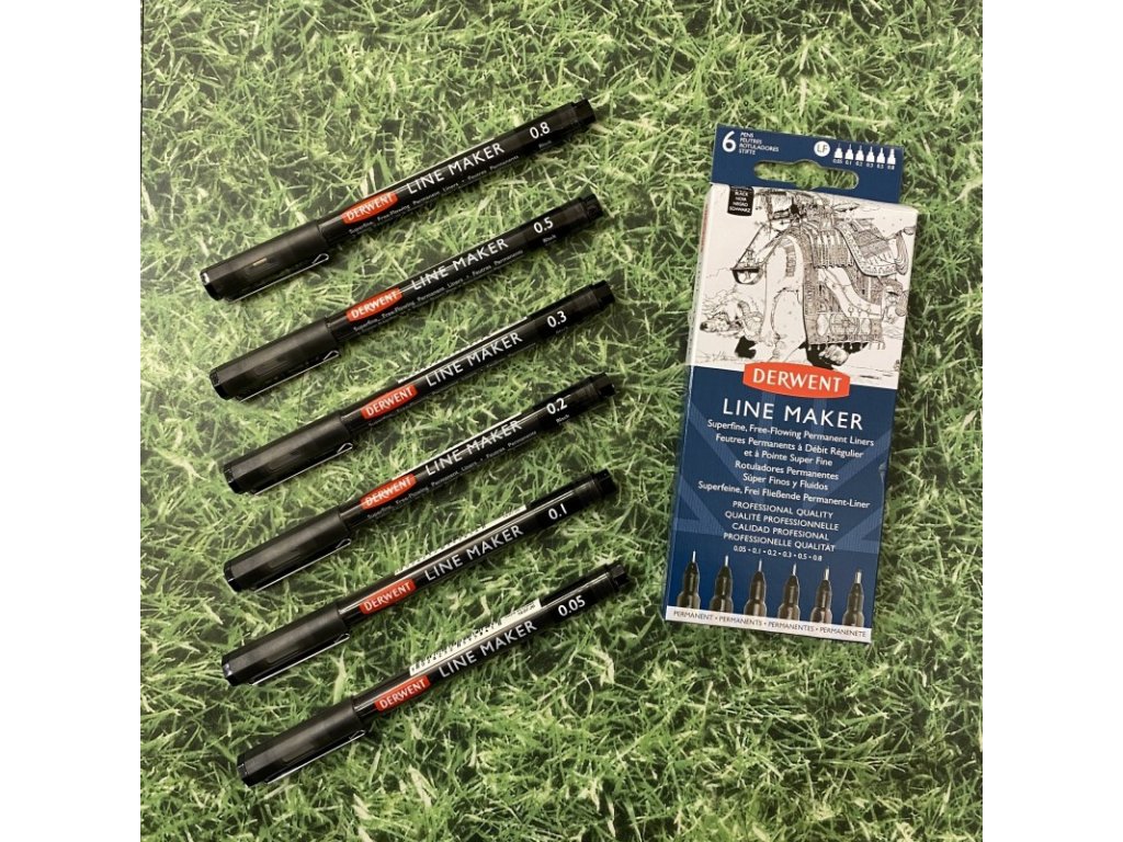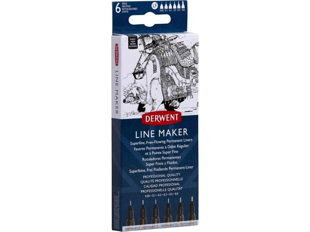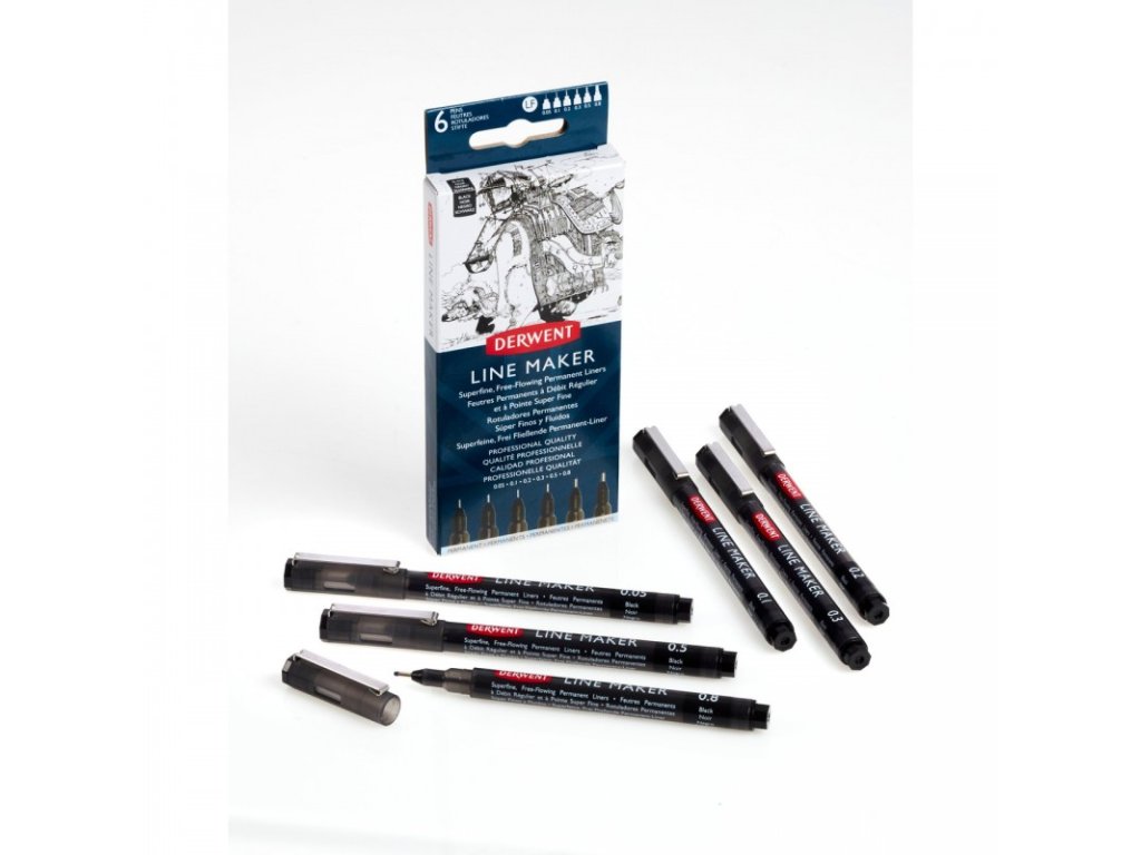 Derwent Line Makers, 2305559, Line Maker, sada černých linerů, 6 ks, různé šíře stop