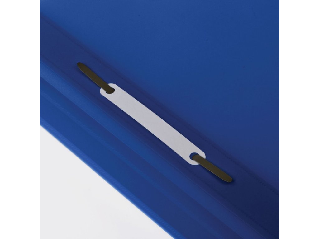 - Bílý papírový zasunovací štítek podél hřbetu slouží k označení obsahu desek. Výkroj umožňuje snadnou výměnu štítku.