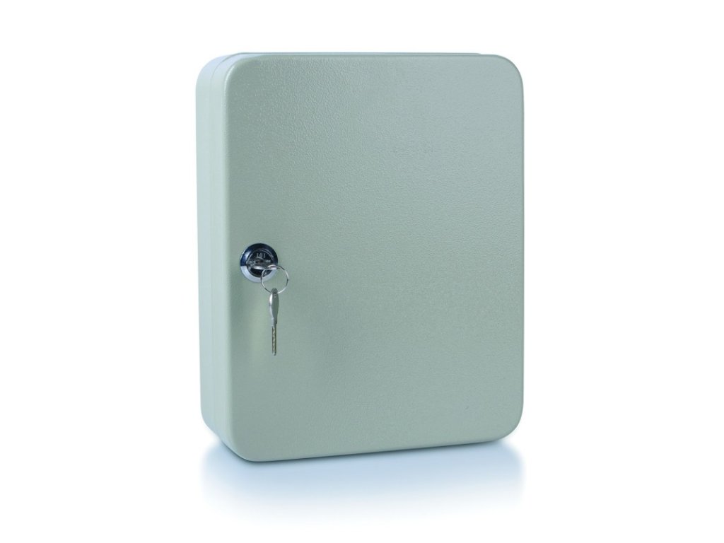 Kovová schránka na klíče - kapacita: 48 klíčů. Umístění vhodné pro recepce, bezpečnostní pulty, školní šatny atd. Obsahuje barevný mix rozlišovačů na klíče. Uzamykatelná. Rozměry: 250x180x80 mm.