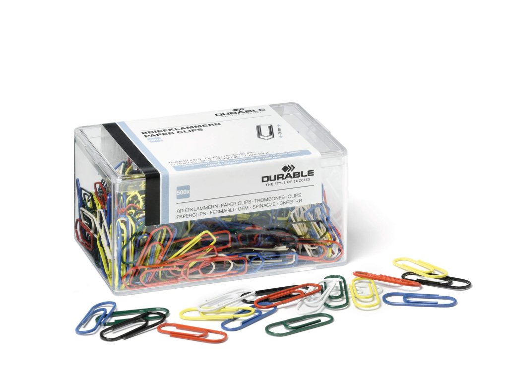 DURABLE 1241, kancelářské sponky oblé plastové barevné 26 mm, 500 ks