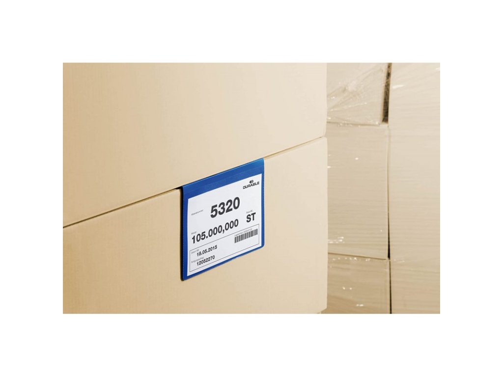 Durable 1721, závěsná plastová kapsa pro dokumenty A6 na označení palet, modrá