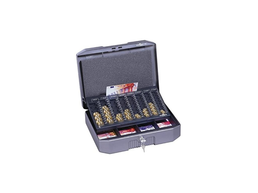 Durable 1782, kovová pokladna Euroboxx na mince a bankovky, uzamykatelná