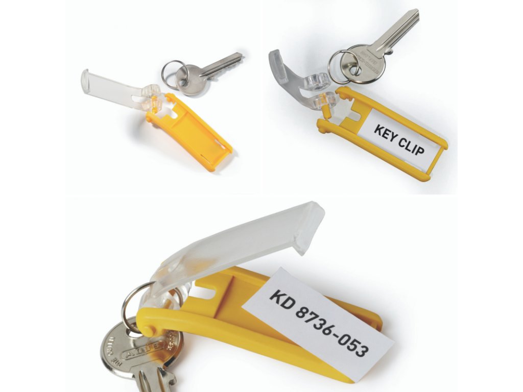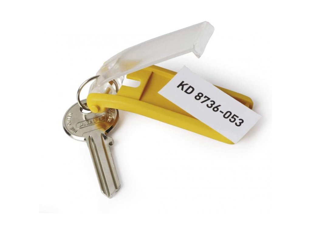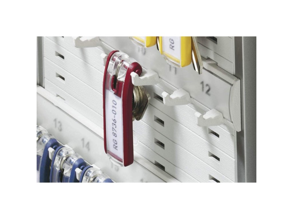 - Tento jedinečný plastový přívěsek na klíče umožňuje dokonalý přehled o klíčích ve skříňce díky tomu, že klíče jsou na plocho uloženy za ním a popisovací štítky jsou tak kdykoliv čitelné.