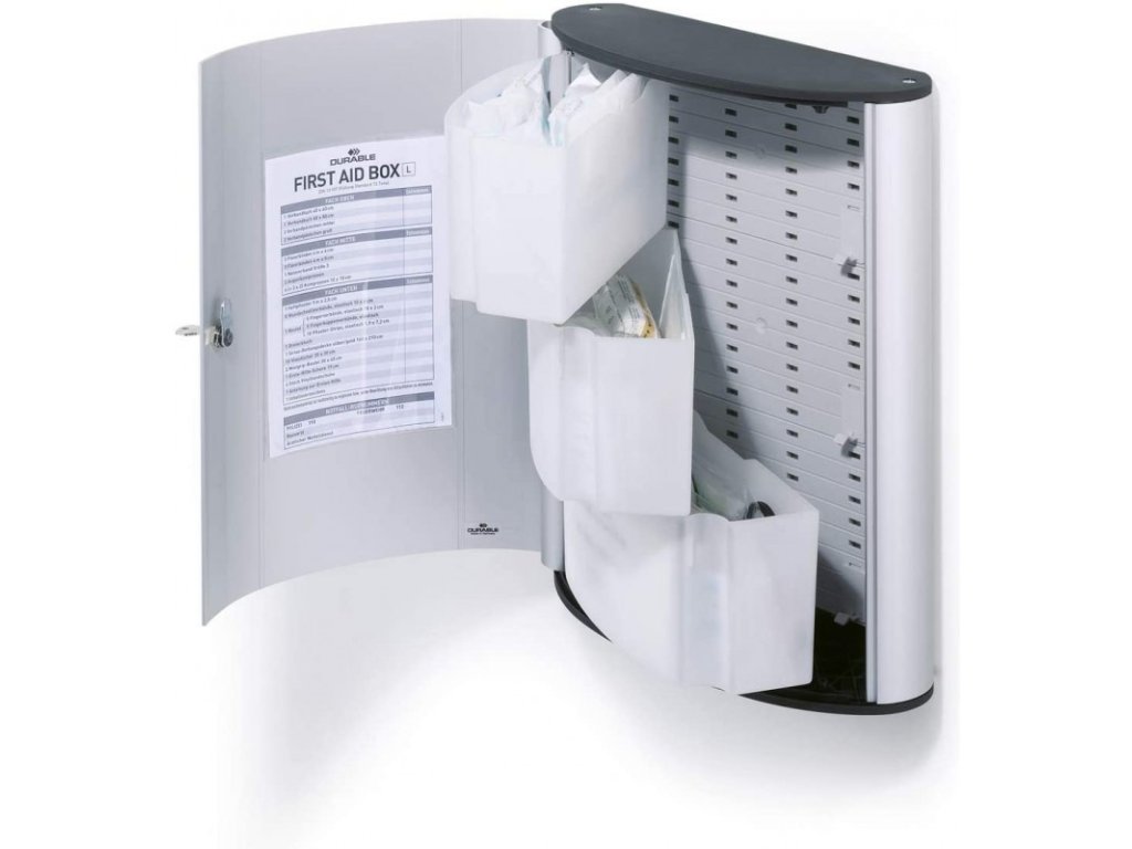 DURABLE 1974, nástěnná lékárnička včetně vybavení stříbrná, leštěný hliník