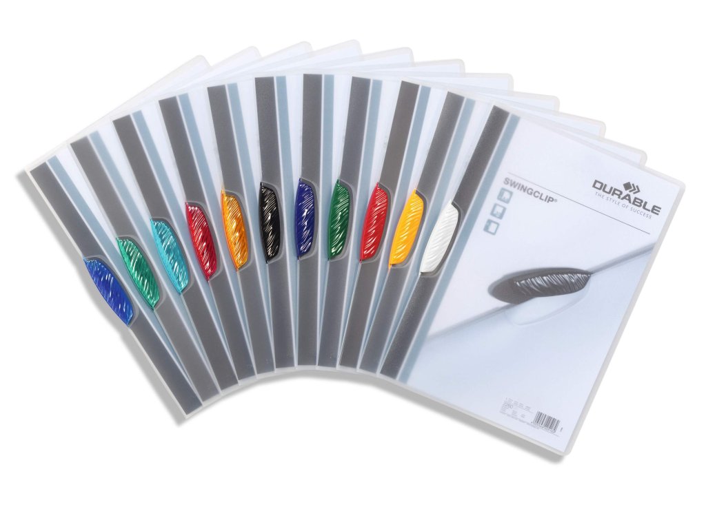 - Swingclip® jsou atraktivní desky v kombinaci s výklopným plastovým klipem v různých barvách pro archivaci a prezentaci neděrovaných dokumentů!