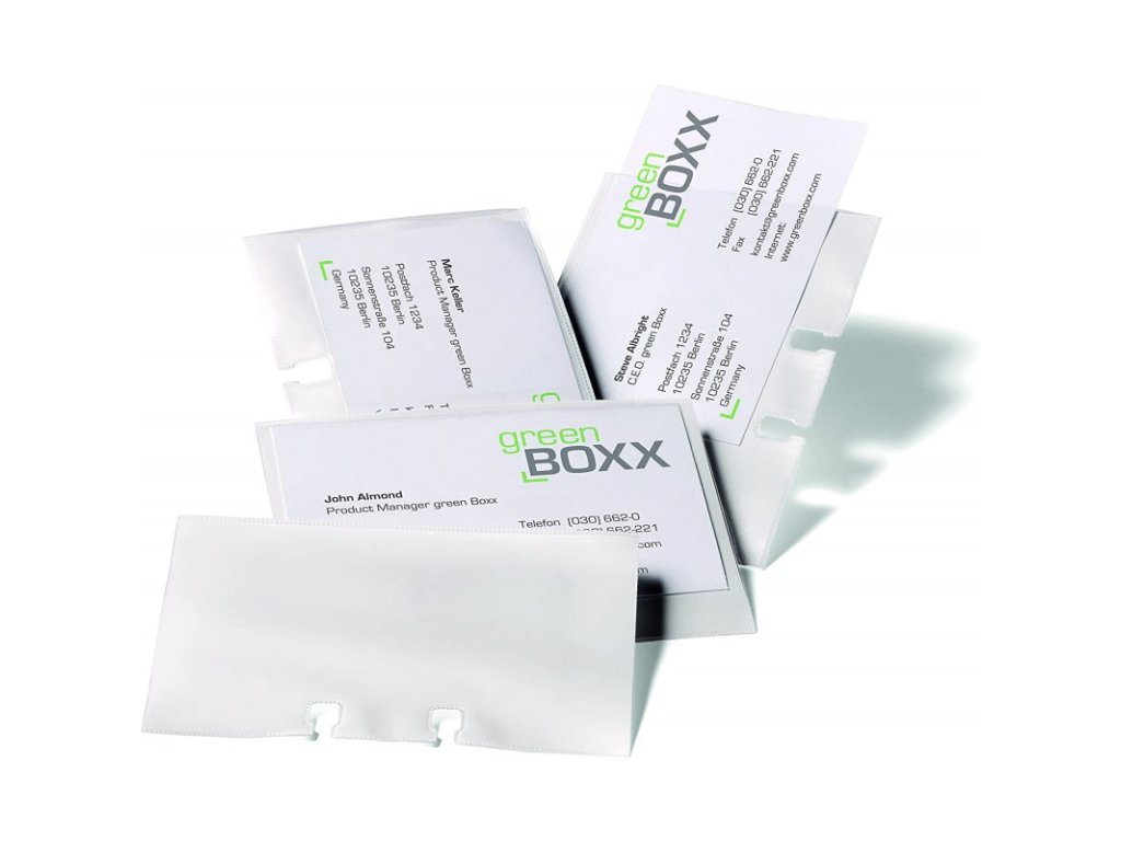 - Obsahuje 100 ks průhledných oboustranně využitelných pouzder pro dvě stě vizitek a dvanáctidílný abecední rejstřík A-Z.