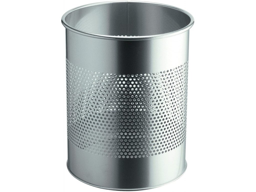 Durable 3310, kovový odpadkový koš 15 litrů kulatý s perforací, stříbrný